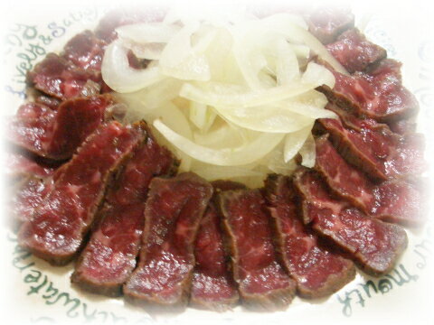 国産牛 たたき 500g 【yo-ko1016】 価格: 2,415円 レビュー評価: 4.79 レビュー数:28 国産牛たたき 定番の足柄牛たたきですが、材料がわずかしかございません。そこで「かどや特製醤油ダレ」使用のたたきを皆様に知って頂きたい為に国産牛でたたきを焼いてみました。今なら、1セット2415円(税込)でのご提供です。 【原材料名】 国産牛肉・醤油・にんにく・塩・こしょう・グルタミン酸ナトリウム 【お召し上がり方法】 真空パックのまま冷蔵解凍後薄くスライスして、お好みでにんにく醤油、しょうが醤油等でお召し上がりください。解凍は芯がまだ凍ってる状態くらいが一番スライスしやすいです。薄くスライスする事によって、舌にたたきが乗った瞬間、牛肉の脂が溶け出しお肉の甘みをよりいっそう感じていただけると思い Supported by 楽天ウェブサービス |